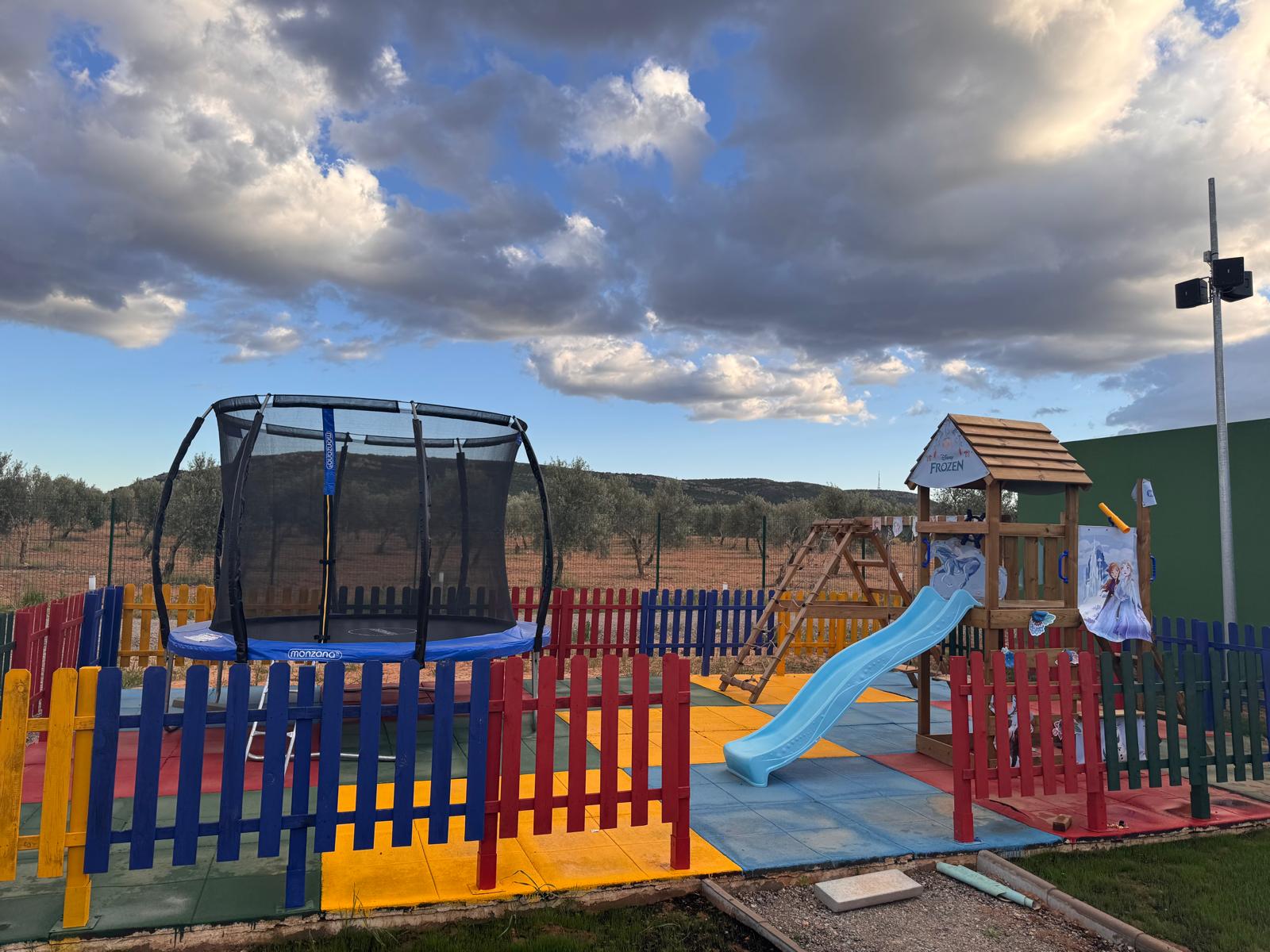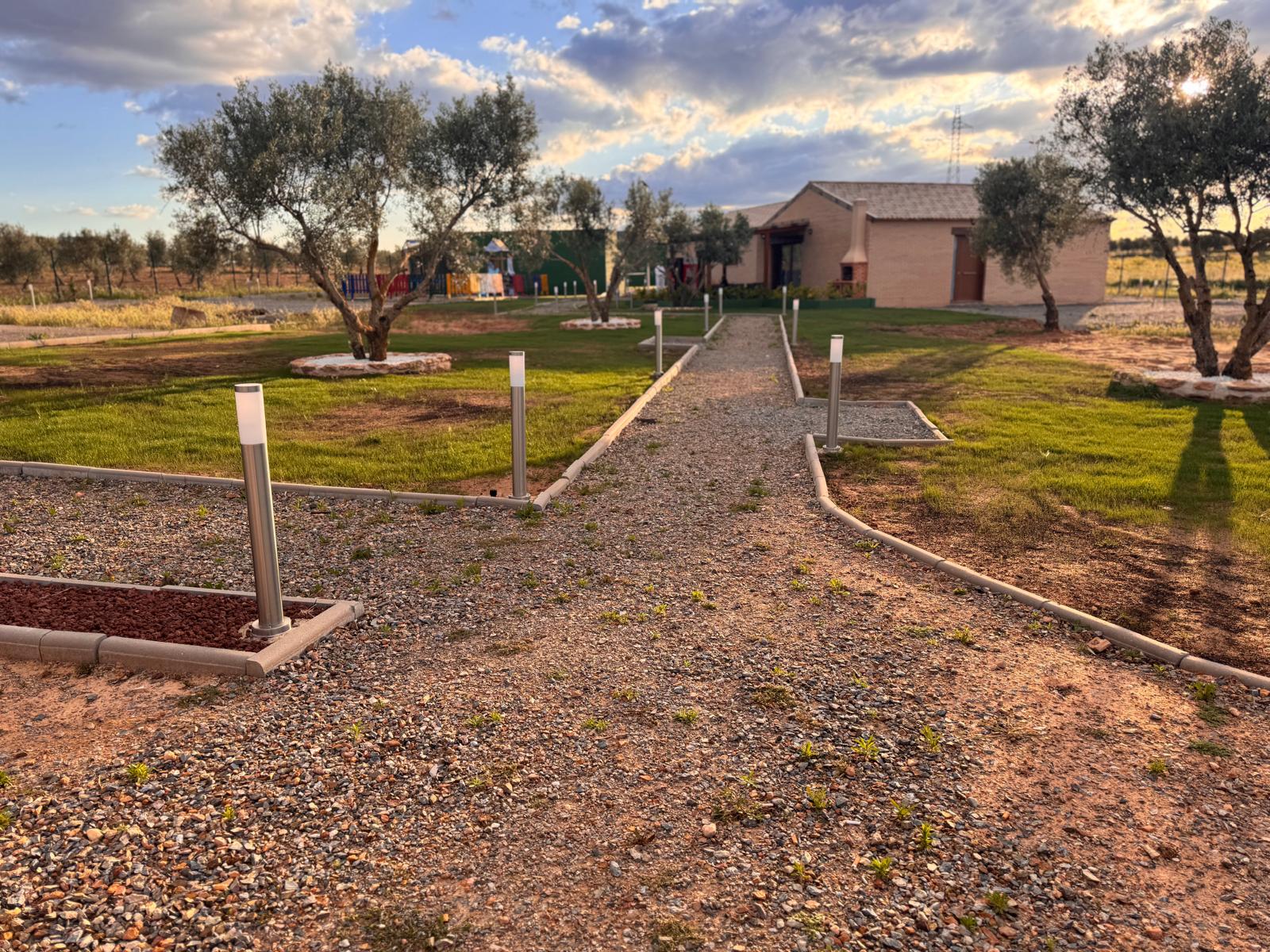Desde zonas al aire libre para pasear o jugar hasta rincones pensados para el descanso, todo invita a disfrutar de la tranquilidad manchega sin renunciar al confort.