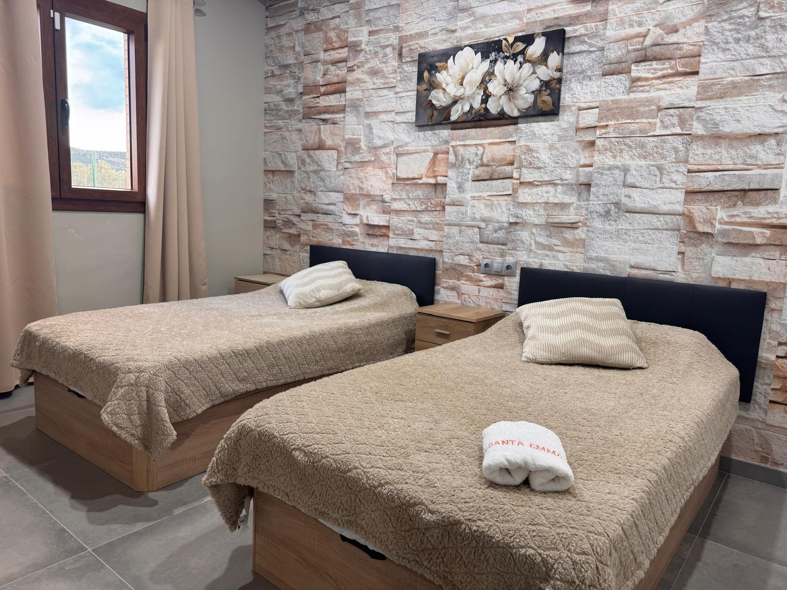 Ubicada en un entorno natural privilegiado, esta casa dentro del complejo rural Santa Emma ofrece el espacio ideal para desconectar. El alojamiento cuenta con 2 dormitorios, un baño, salón con cocina americana, aire acondicionado frio y calor, wifi gratuito, ropa de cama, toallas, barbacoa y aparcamiento exclusivo junto a la casa.